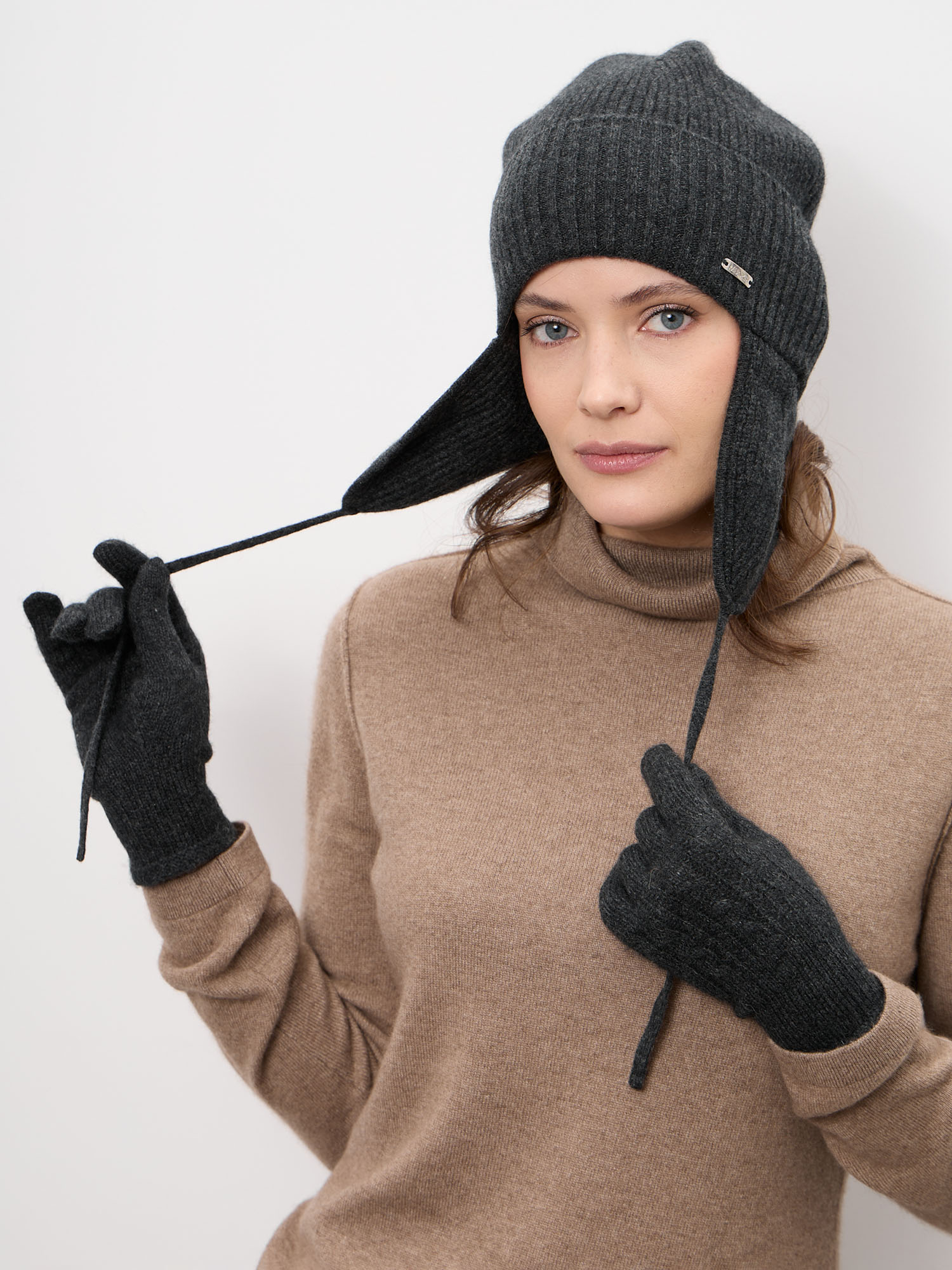 Элегантная шапка из натурального кашемира в универсальном графитовом оттенке. Лаконичный дизайн подчёркивает благородную фактуру материала и легко сочетается с классическими и повседневными образами. Модель дополнена удлинёнными ушками с завязками, которые обеспечивают дополнительное тепло и комфорт в холодную погоду.