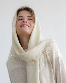 Косынка мягкая и тёплая. Смотрится эффектно! Вещь добротная. Но цвет в жизни не такой белоснежный как на картинке , а более грязнее чтоли. |