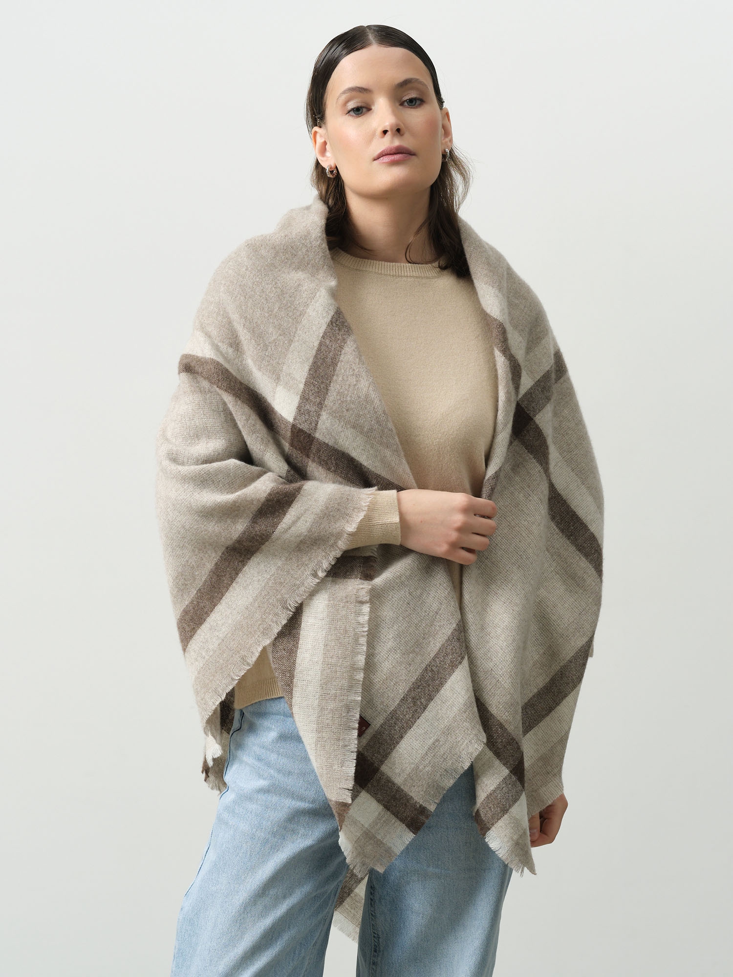 Лёгкий и тёплый платок мягко драпируется и может носиться разными способами — на плечах, вокруг шеи или как стильный акцент поверх верхней одежды.