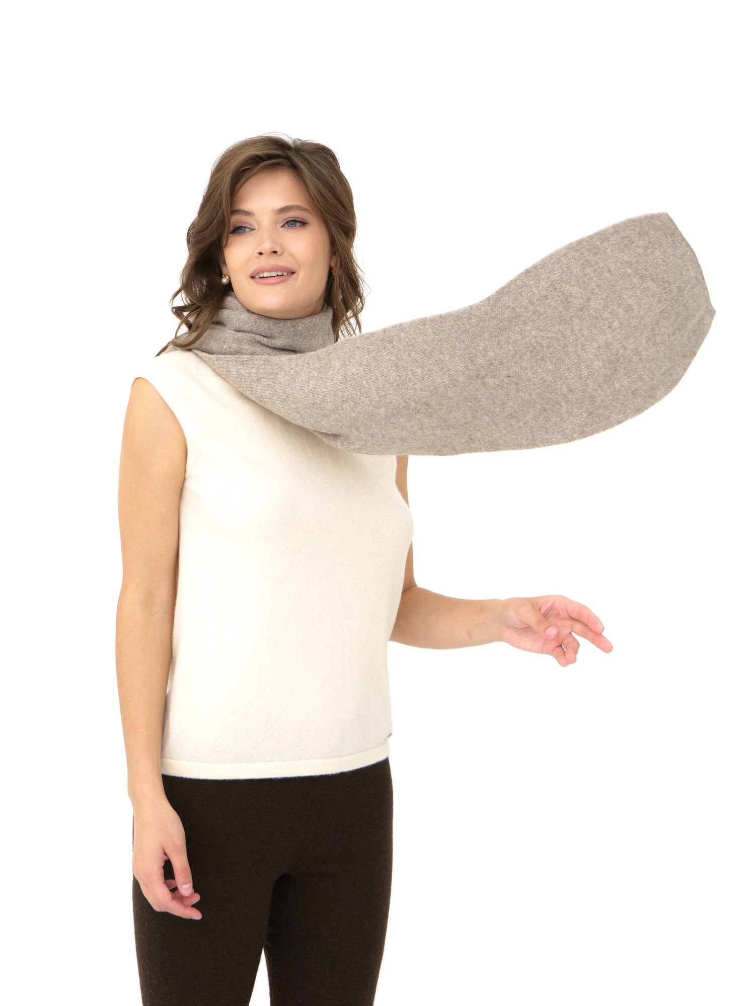 Лёгкий и тёплый аксессуар, который можно носить различными способами — свободно на плечах, обернув вокруг шеи или создавая многослойную драпировку. Подходит для повседневных, деловых и расслабленных образов.