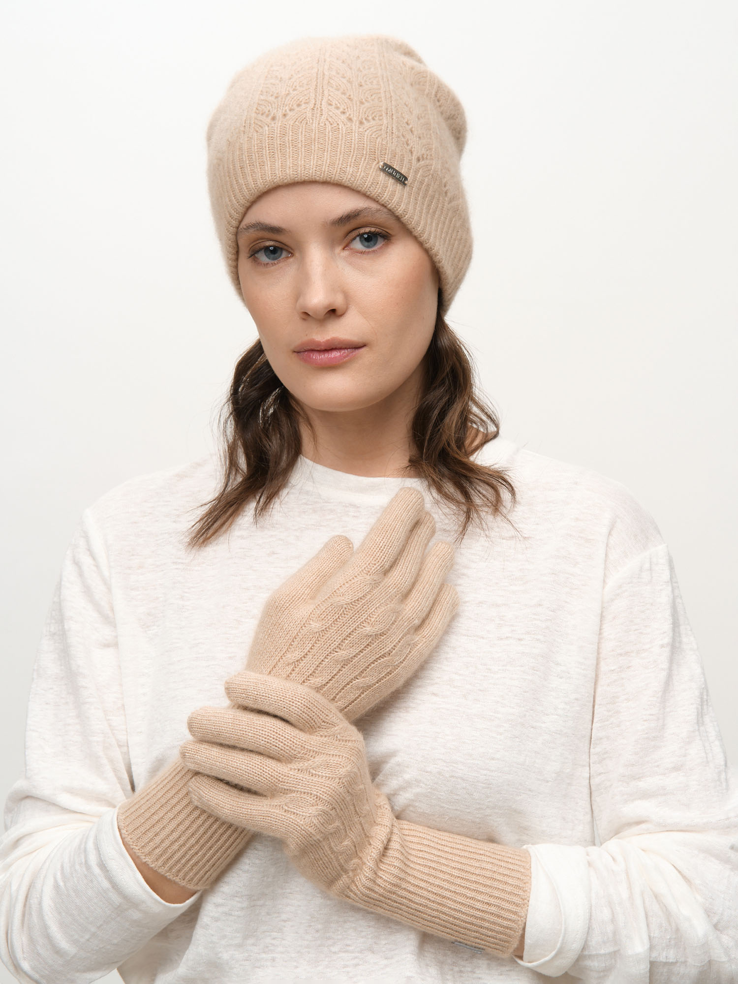 Перчатки выполнены из натурального кашемира — премиального материала с исключительной мягкостью и лёгкостью. Тонкое волокно эффективно сохраняет тепло, оставаясь «дышащим» и гипоаллергенным. Кашемир ценится за долговечность и комфорт, что делает изделие выгодной инвестицией