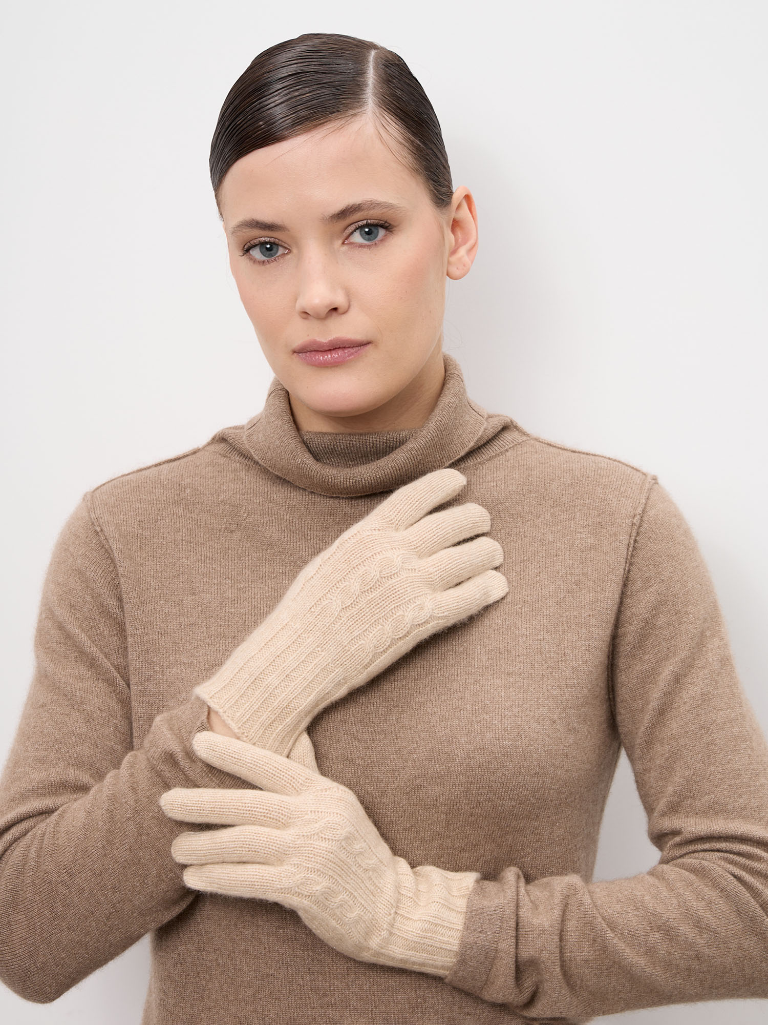 Перчатки выполнены из натурального кашемира — одного из самых ценных и редких материалов. Кашемир отличается исключительной мягкостью, лёгкостью и высокой теплоизоляцией. Он обеспечивает естественную терморегуляцию, даря тепло в холодную погоду и комфорт в помещении.