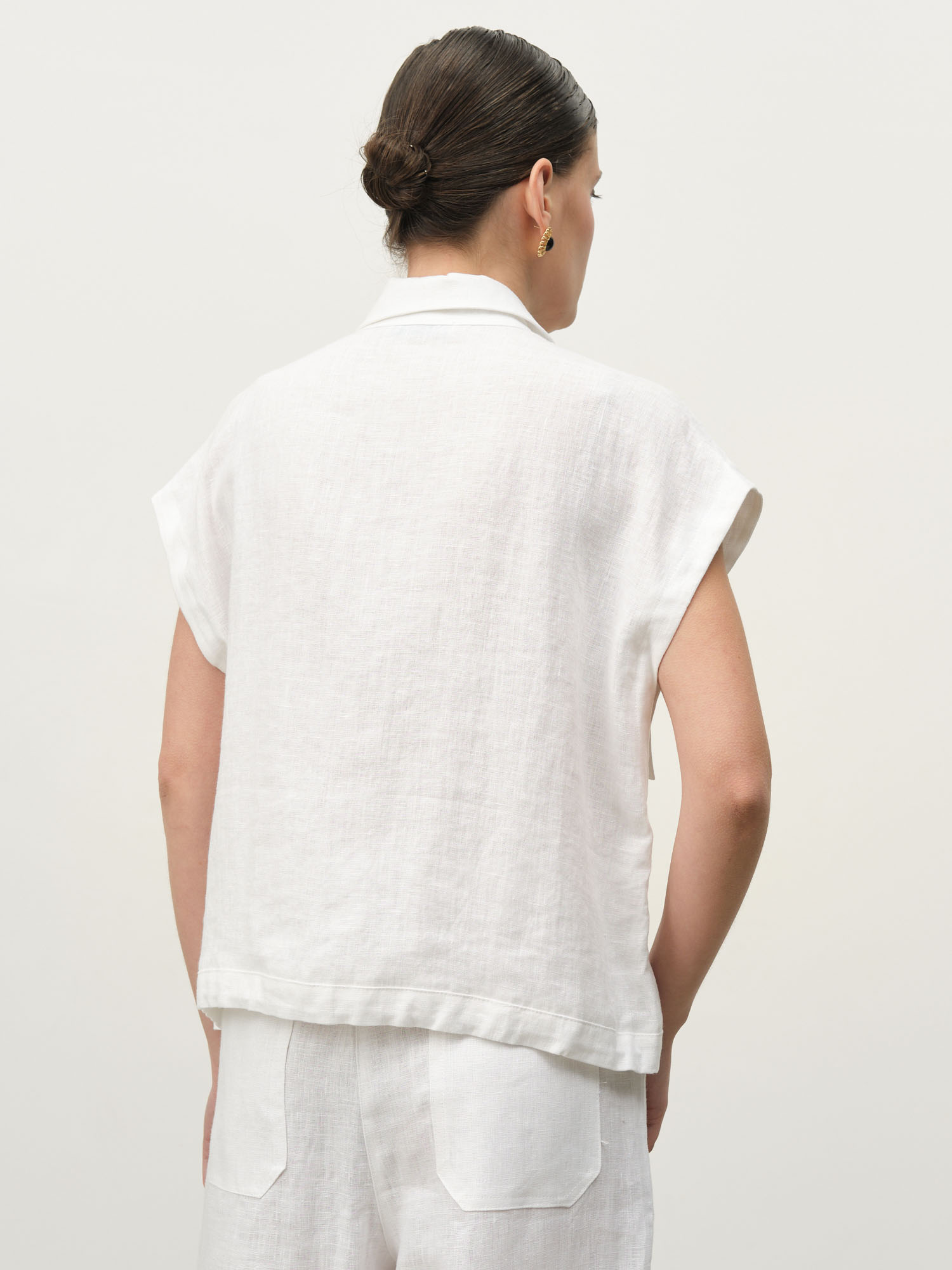 Отлично сочетается с льняными брюками, юбками и шортами. Подходит для повседневных, летних и расслабленных образов.