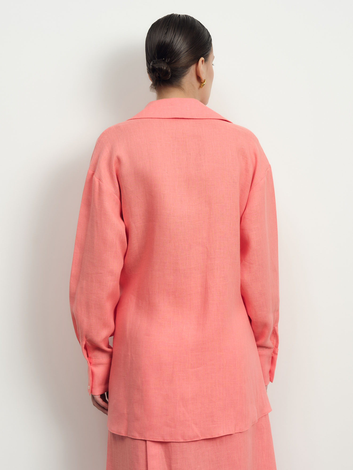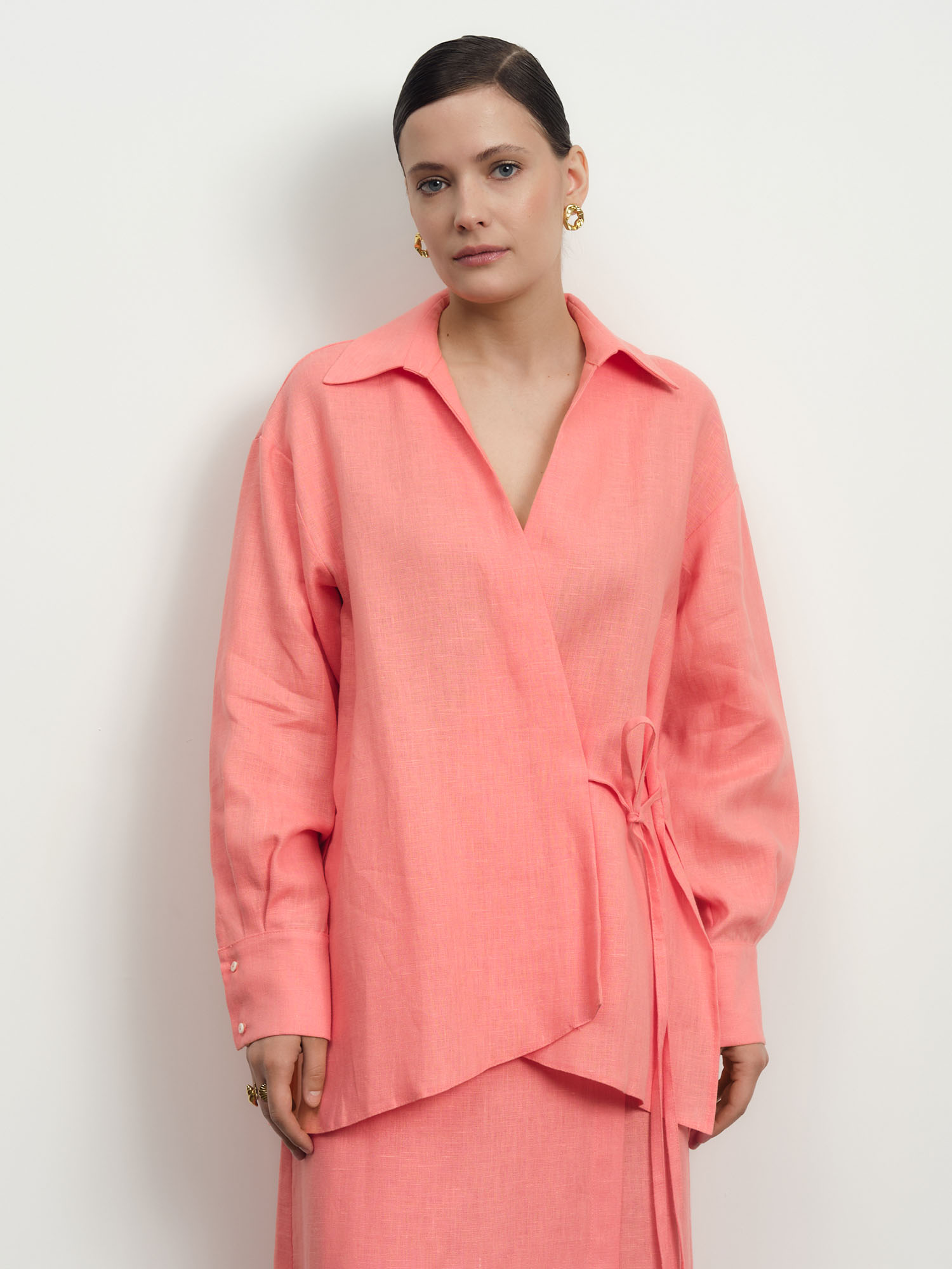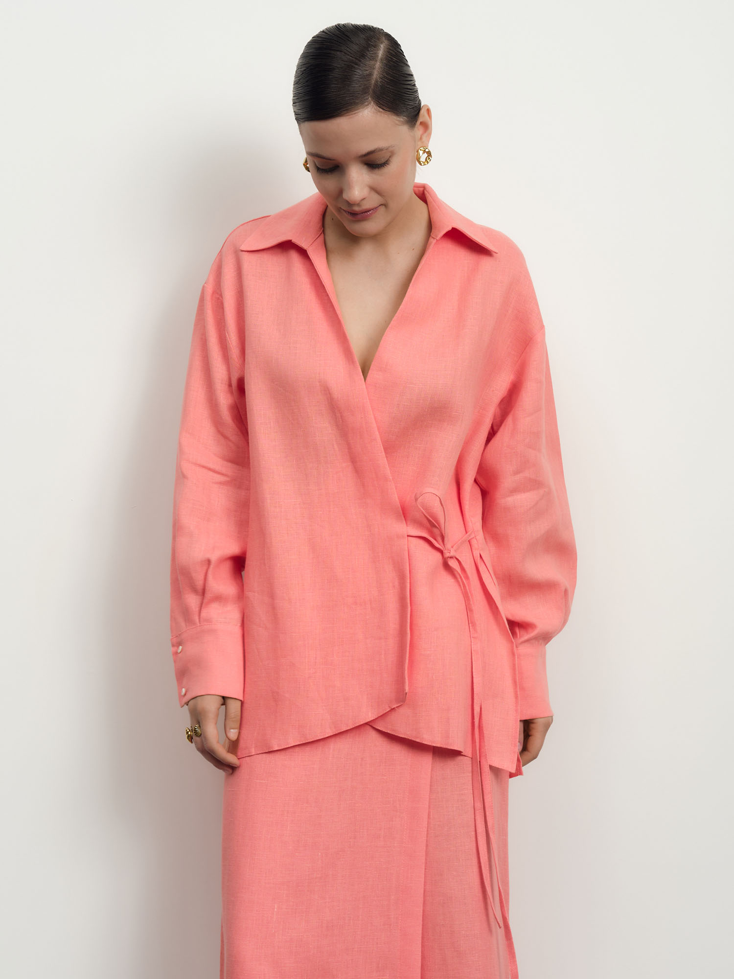 Льняная рубашка — стильная и выразительная модель с современным асимметричным кроем. Идеально подходит для теплого сезона и создания ярких, актуальных образов.