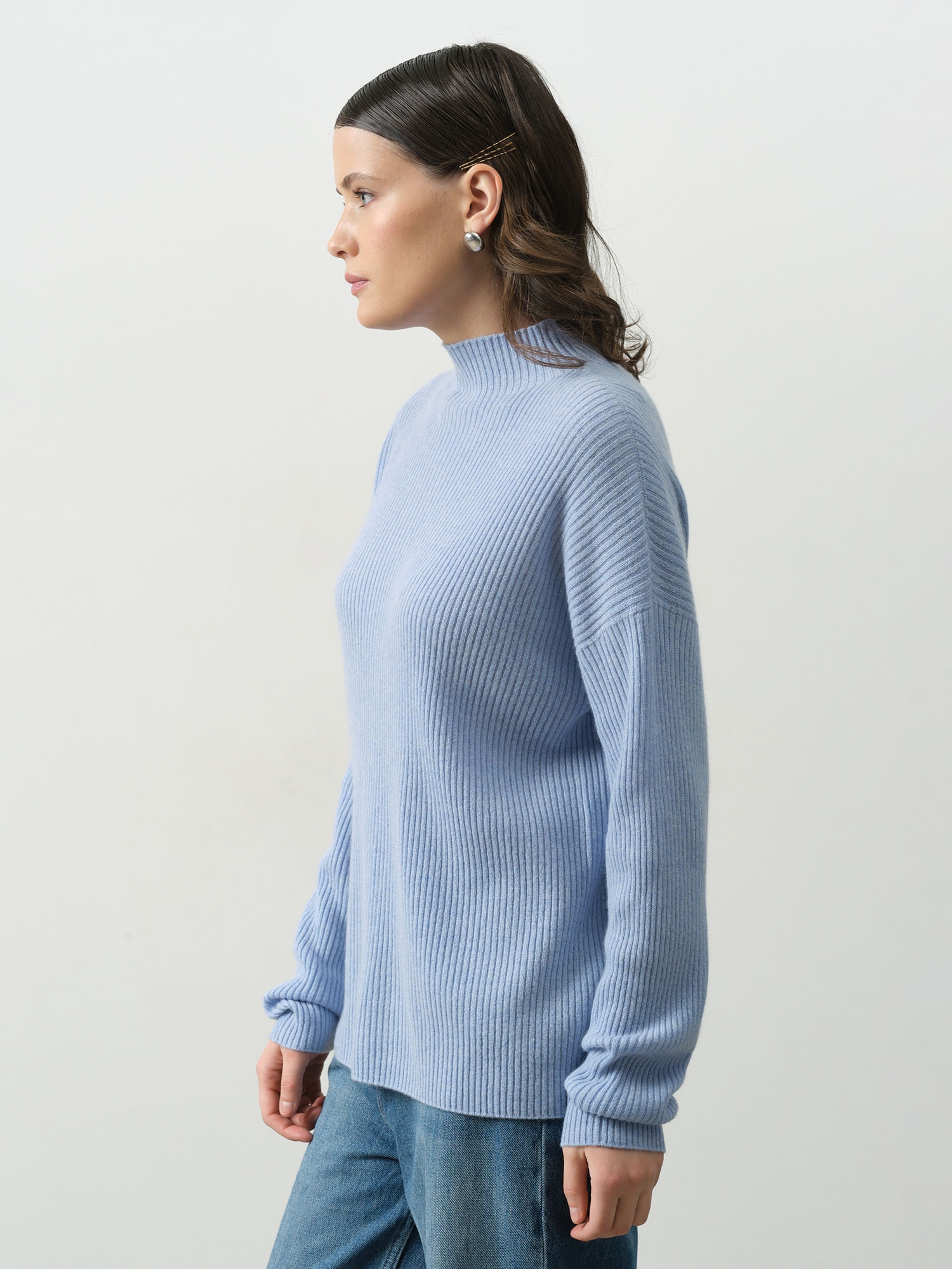Очень приятный свитер нежно голубого цвета. Но мне показался коротковат. Не хватает как будто нескольких сантиметров. Хотя в остальном размеры нормальные. И рукава, и горло, и обхват в целом. Тактильно не к чему придраться. Кашемир есть кашемир. |