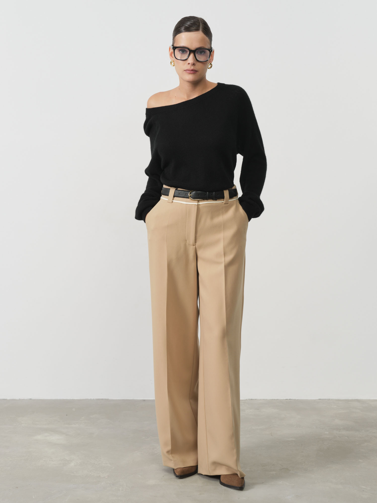 Свободный прямой силуэт обеспечивает удобную посадку и свободу движений. Мягкий кашемир приятно прилегает к коже и создаёт ощущение лёгкости и тепла.