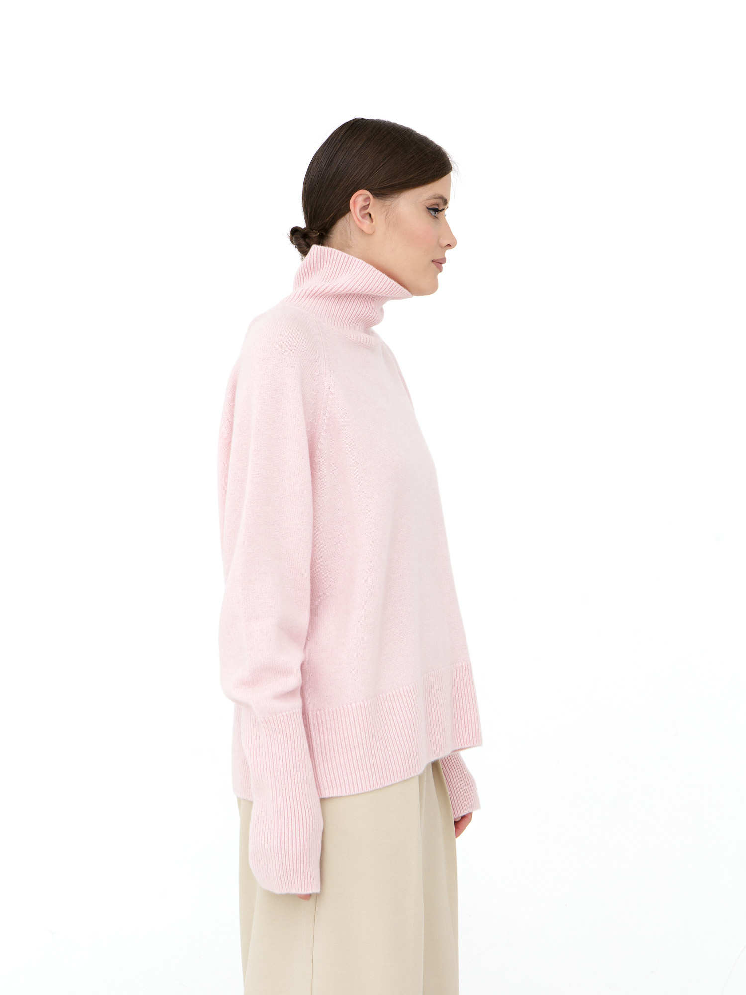 Кашемировый женский джемпер свободного кроя в нежном розовом цвете — это идеальный выбор для тех, кто ценит стиль и комфорт. Изготовлен из 100% кашемира, который отличается исключительной мягкостью и теплотой, обеспечивая максимальный комфорт в прохладные дни. Джемпер имеет свободный силуэт и высокий воротник, который добавляет нотку элегантности и защищает от ветра. Нежный розовый оттенок подчеркнет вашу женственность и создаст гармоничный образ, подходящий как для повседневного использования, так и для особых случаев.