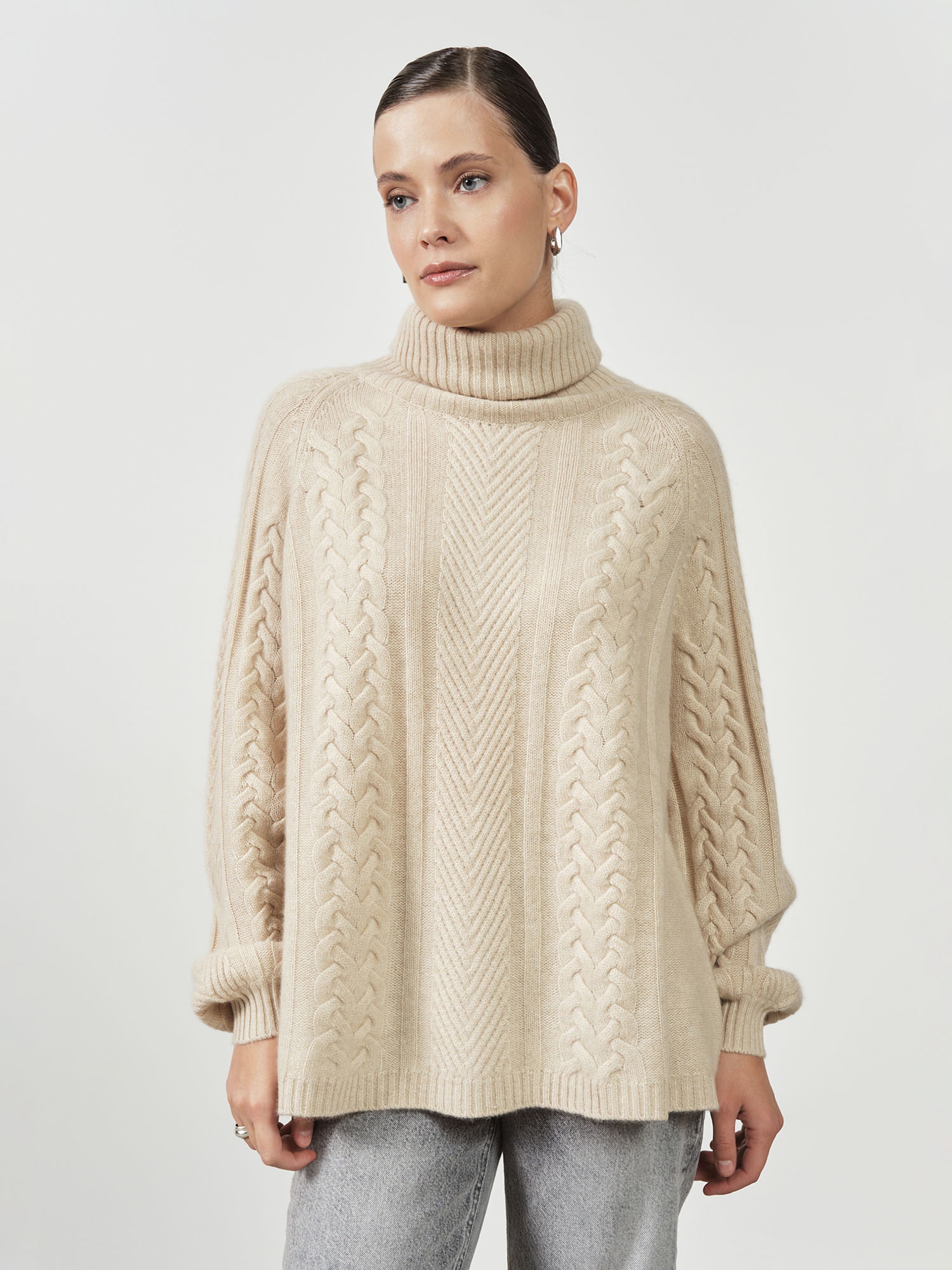 Женский свитер из кашемира 5056 — уютная и элегантная модель с выразительной фактурной вязкой. Свободный силуэт и высокий воротник создают современный и комфортный образ. Свитер легко становится центральным элементом гардероба и гармонично сочетается с брюками, юбками и джинсами.
