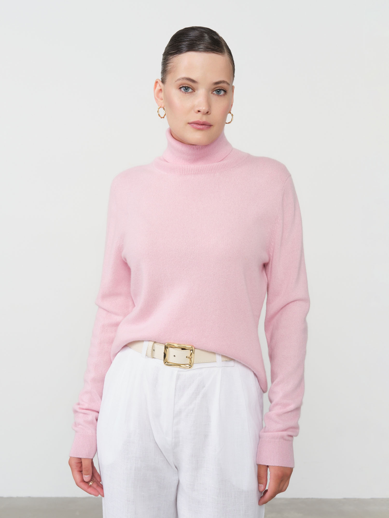 Нежный розовый цвет придает водолазке свежесть и утонченность, позволяя легко сочетать её с различными элементами гардероба. Эта водолазка идеально подходит как для повседневной носки, так и для создания романтических образов, добавляя нотку нежности и роскоши.