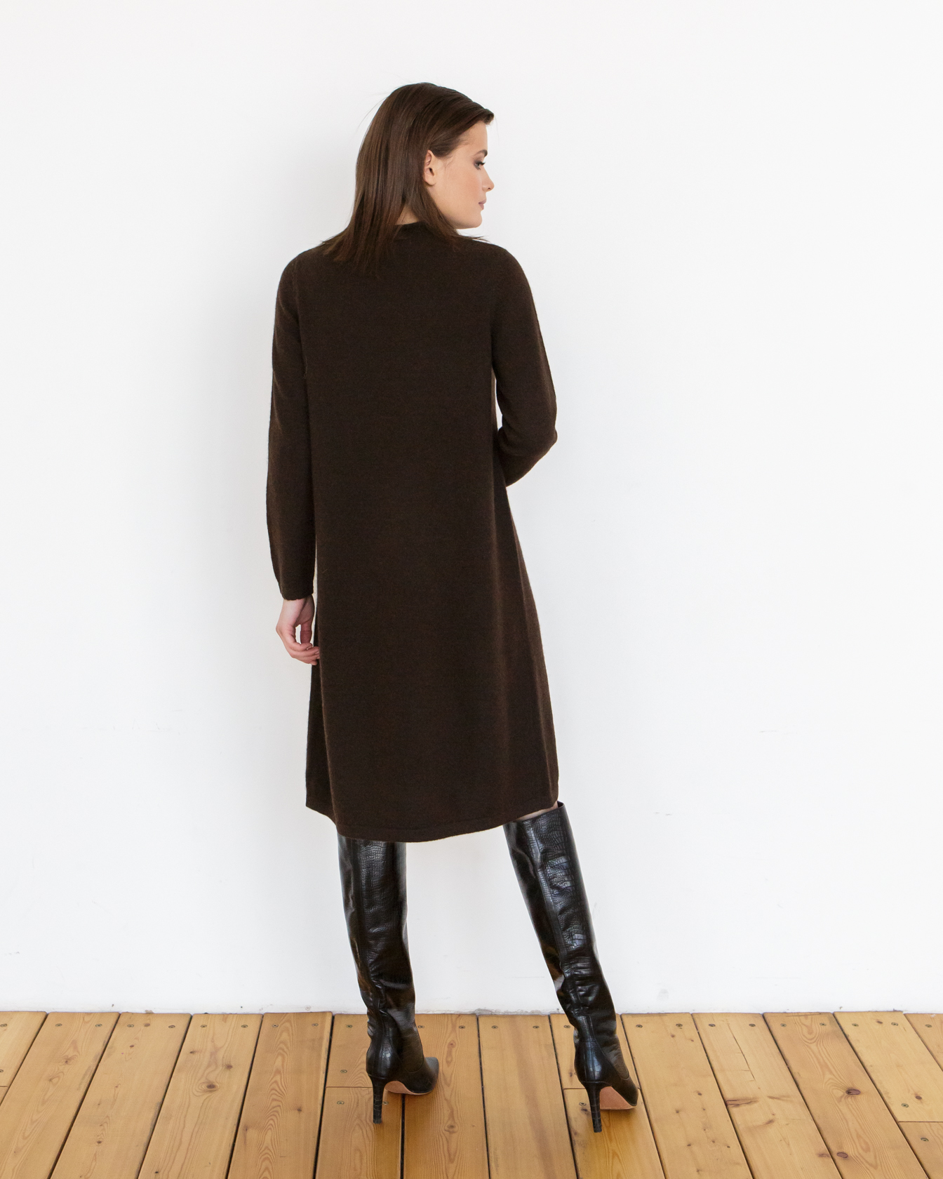 Платье из пуха яка — элегантная модель с выразительным дизайном, сочетающая комфорт и современный стиль. Удлинённый силуэт и мягкая текстура делают его идеальным выбором для повседневных и более собранных образов.